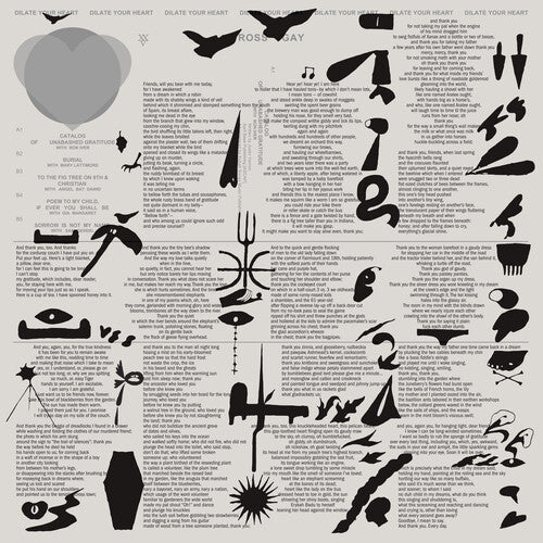 Over the last 12 years, Ross Gay's poems have given us indelible images and phrases of radical empathy and unabated gratitude; about community, collaboration, connectedness and hard work. They have crept into our hearts and made a home of all of us. And so we are launching our 25th Anniversary celebration with 'Dilate Your Heart', our first spoken word album since titan Robert Creeley's self-titled release twenty years ago. "Catalog of Unabashed Gratitude" is given a gorgeous, slowly creeping bed of vines by Bon Iver, as Gay's unadorned voices speaks a lifetimes of Thank You's. On "Burial," harpist and composer Mary Lattimore's lunar landscape follows Gay's voice into space, telling of our endless energy exchange with nature. Chicago's Angel Bat Dawid dances with the frenetic, joyous scene Gay leads us through on "To the Fig Tree on 9th and Christian," in which a group of Philadelphia strangers scramble together to harvest the fruit of the titular urban fig tree. Songwriter Gia Margaret provides a mystical, amniotic environment for Gay's "Poem To My Child If Ever You Shall Be," a love letter to an imagined future child, treating Gay's voice like a message in a bottle to a far off idea made only of love and potential. Sam Gendel, a secret weapon collaborator, affects Gay's voice on "Sorrow Is Not My Name" to something glassy and almost singsongy. Throughout, Gay recites his poems with bright aliveness, his voice as warm and easy when he speaks about death as when he speaks about mercy, or love.