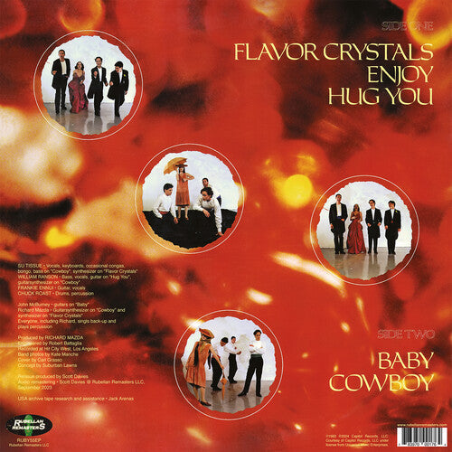 After making a splash with their 1979 debut single Gidget Goes To Hell, Suburban Lawns released their 1981 self-titled debut LP, which featured another cult single Janitor. The final Suburban Lawns offering was the 1983 5-track EP titled Baby. With the band now paired down to a four-piece, the three tracks on side 1 continued in the zany style the band had become known for. The best-known track Flavor Crystals remains a popular underground favorite today. Su Tissue provides a quirky vocal delivery over the catchy drum and bass backdrop. Enjoy and Hug You are both upbeat and catchy, each sung by other members of the band with Tissue providing backing vocals. Side 2 shows the band moving into a more artsy and experimental direction with the Baby title track receiving a music video. Remastered from original master tapes, Baby is presented here on it's first ever standalone vinyl reissue on Sour Apple colored vinyl, limited to 500 copies.