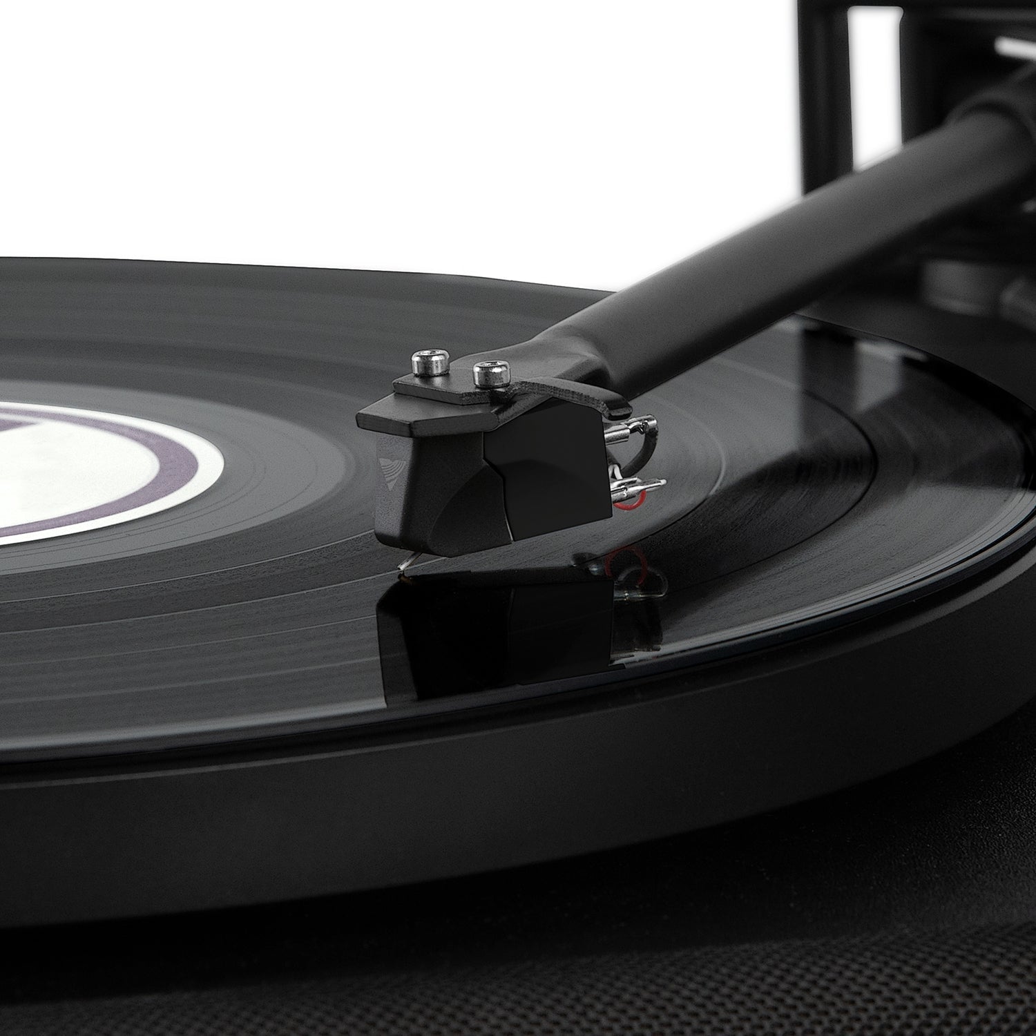 - Patent-pending anti-vibration belt drive system allows your records to be played crisp and clear at high-volumes without distortion from speaker vibration